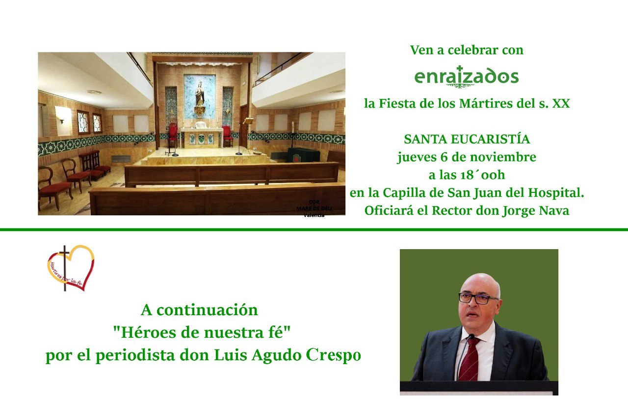 - Iglesia San Juan del Hospital, a las 18´00h. A continuación Luis Agudo, periodista de COPE nos hablará sobre «Los héroes de nuestra fe»